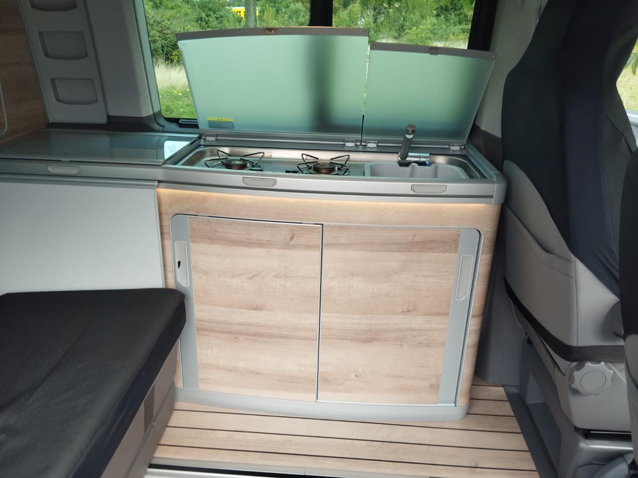 Le Volkswagen California, est le van aménagé mythique, best-seller et compagnon de route idéal pour partir en solo, en couple, en famille ou entre amis grâce à ses 4 couchages (dont 2 dans le toit relevable).