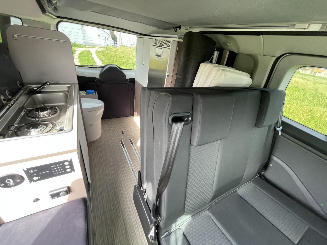 Il dispose en effet d’un lit double central en intérieur où 3 jeunes enfants peuvent dormir ensemble et d’un autre lit double disponible dans le toit relevable.