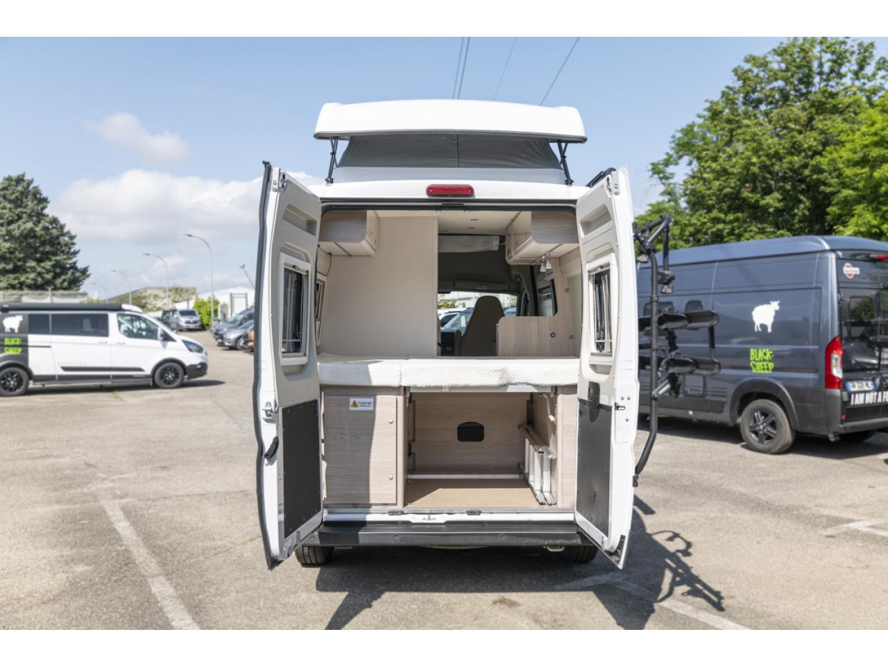 Le Burstner Campeo C540 est idéal pour de longs road trips en famille ou entres amis. Ce fourgon aménagé offre beaucoup de confort en permettant de se tenir debout grâce à un bel espace de vie à bord et un toit relevable. Il dispose de 4 vrais couchages avec 2 lits doubles dont 1 dans le toit relevable. Très confortable et pratique, il comprend une douche chaude et des WC intérieurs. En version 4x4 il est suffisamment compact pour manœuvrer et stationner facilement