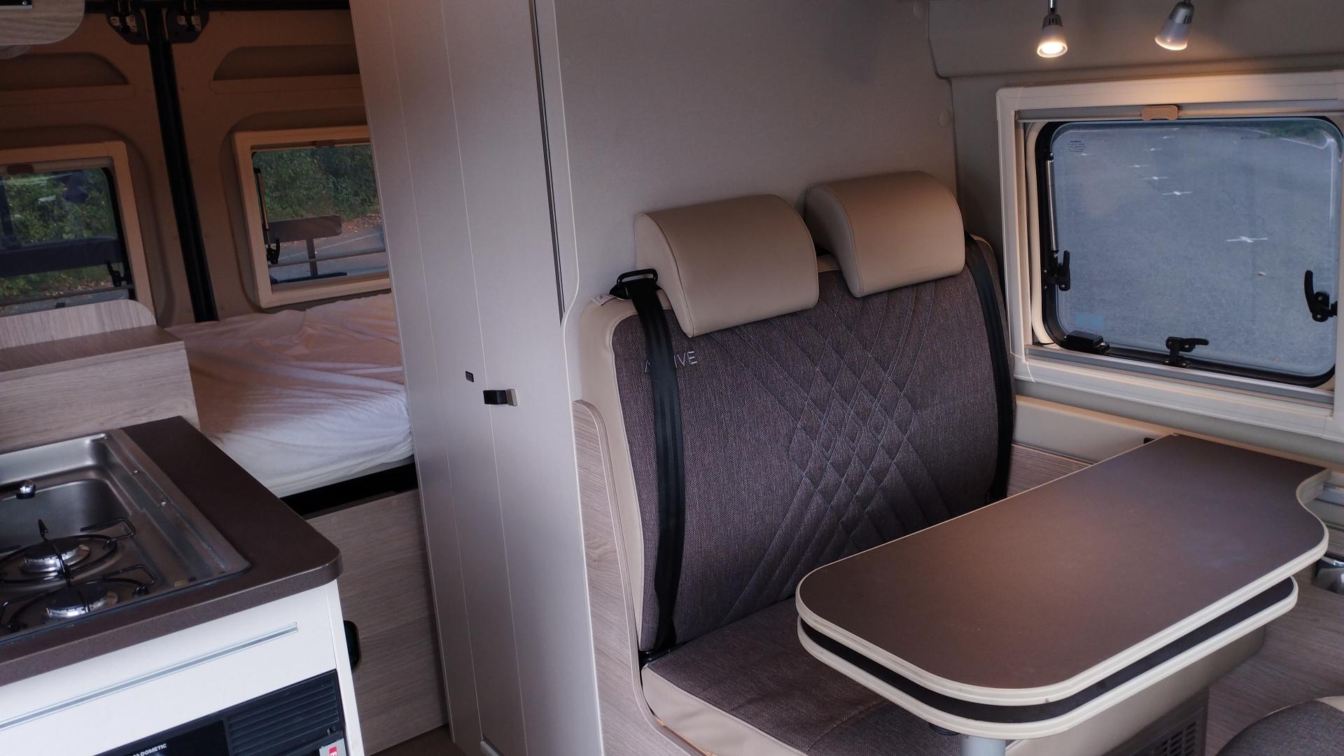 Le Burstner Campeo C540 est idéal pour de longs road trips en famille ou entres amis. Ce fourgon aménagé offre beaucoup de confort en permettant de se tenir debout grâce à un bel espace de vie à bord et un toit relevable. Il dispose de 4 vrais couchages avec 2 lits doubles dont 1 dans le toit relevable. Très confortable et pratique, il comprend une douche chaude et des WC intérieurs. En version 4x4 il est suffisamment compact pour manœuvrer et stationner facilement