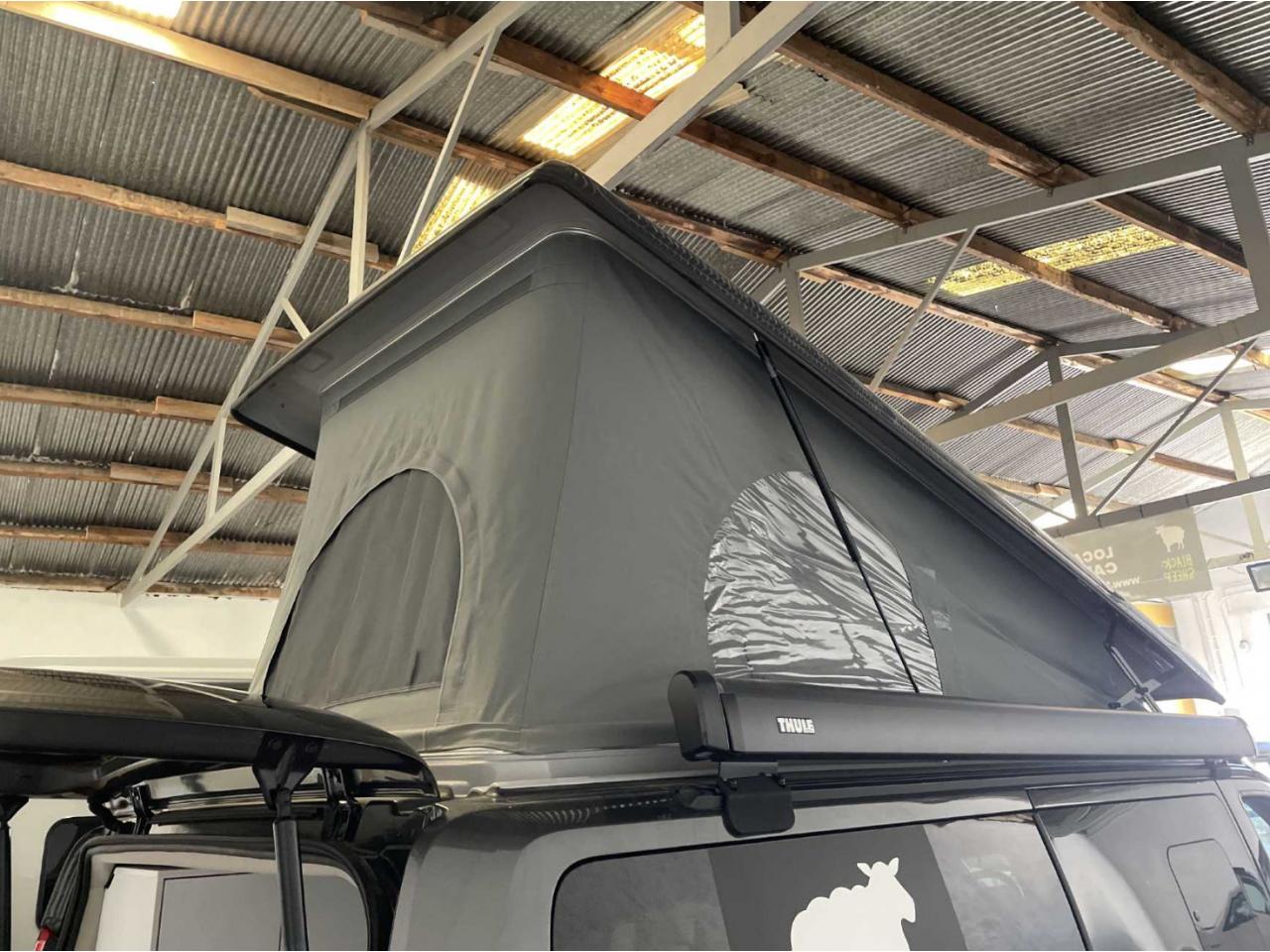 Il dispose en effet d’un lit double central en intérieur où 3 jeunes enfants peuvent dormir ensemble et d’un autre lit double disponible dans le toit relevable.