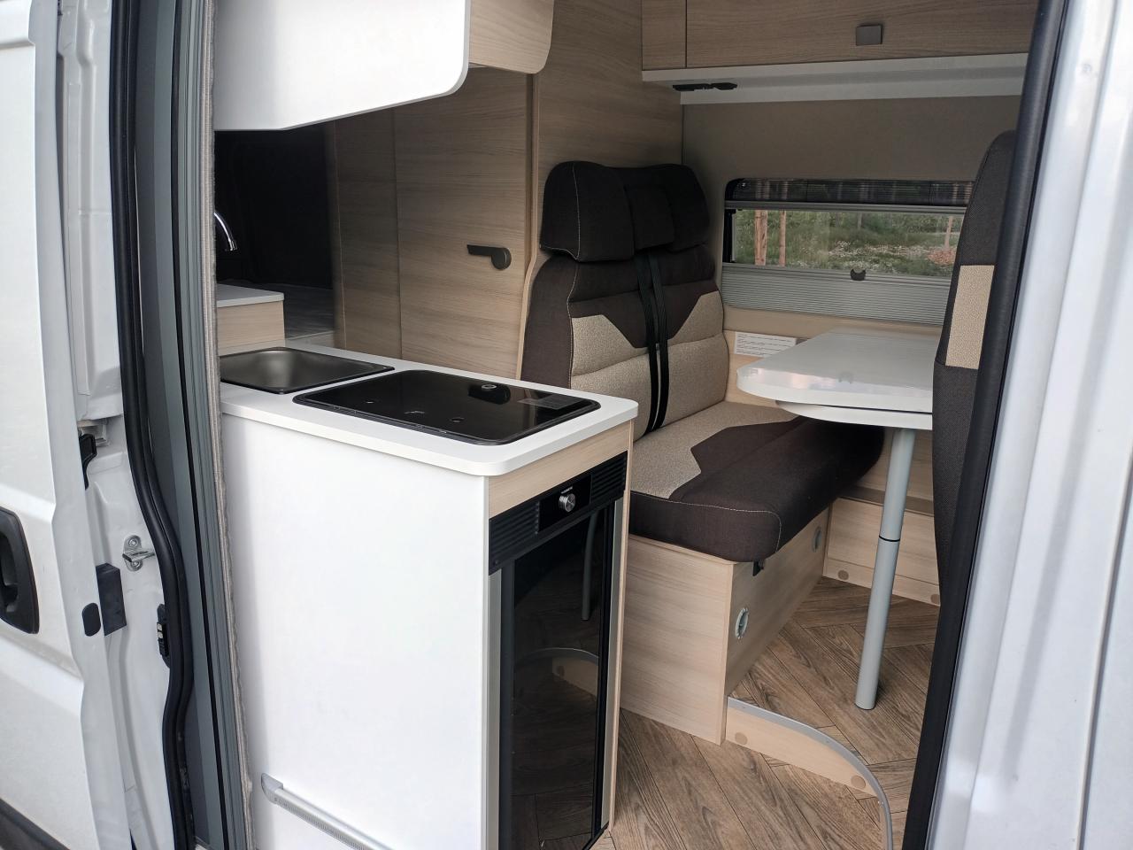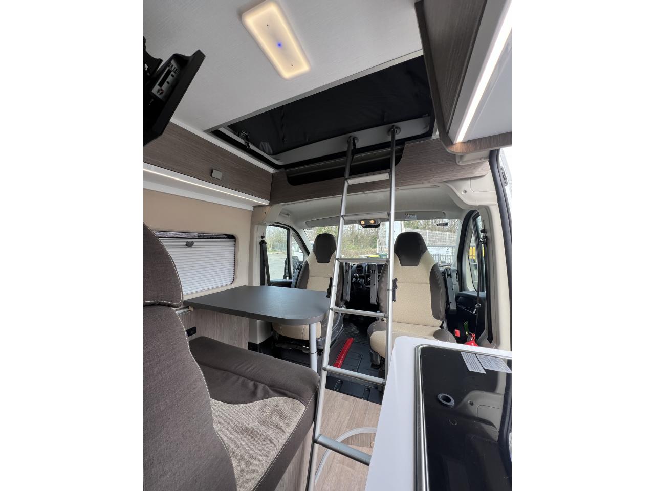 Le Challenger Vany est le compagnon idéal pour de longs road trips car ce fourgon aménagé offre un très bel espace de vie à bord où on peut se tenir debout. Son agencement très complet avec l'espace cuisine, 4 couchages (2 lits doubles superposés), sa douche chaude intégrée et ses WC intérieurs, en font un fourgon extrêmement confortable.
