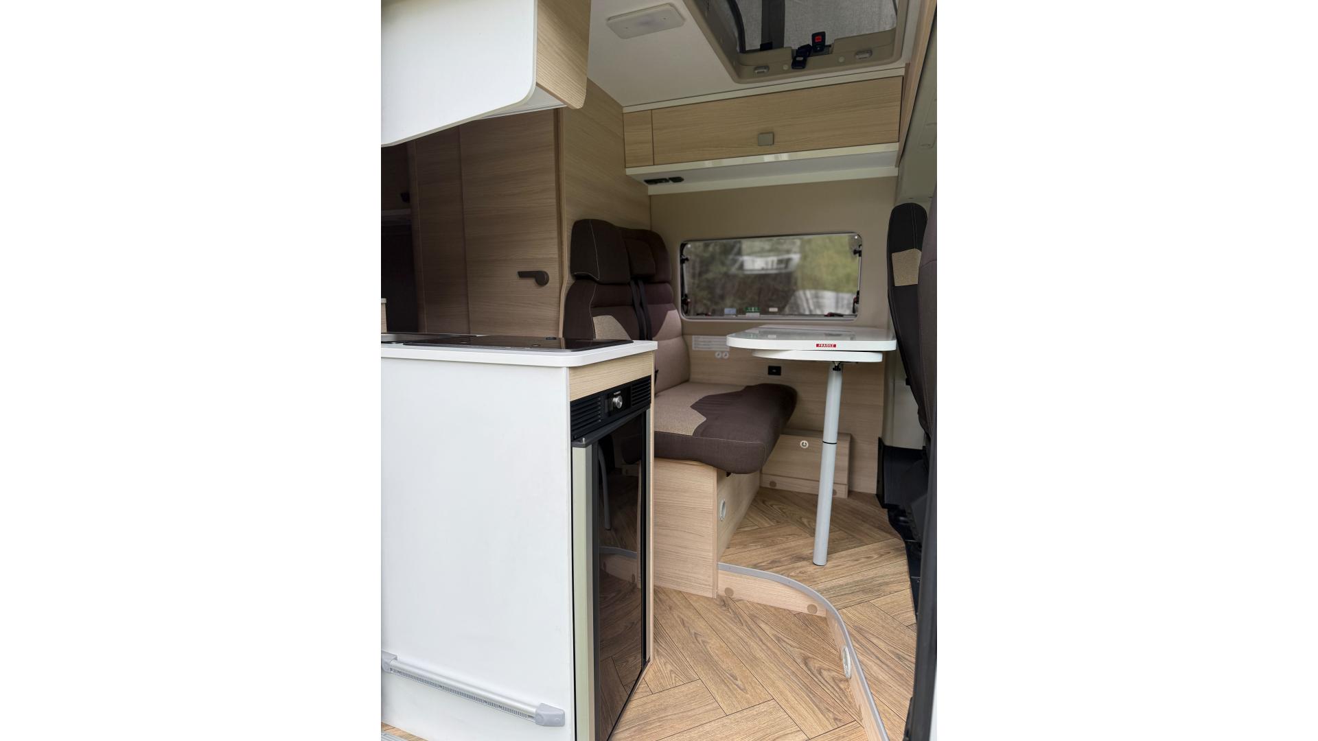 Le Challenger Vany est le compagnon idéal pour de longs road trips car ce fourgon aménagé offre un très bel espace de vie à bord où on peut se tenir debout. Son agencement très complet avec l'espace cuisine, 4 couchages (2 lits doubles superposés), sa douche chaude intégrée et ses WC intérieurs, en font un fourgon extrêmement confortable.
