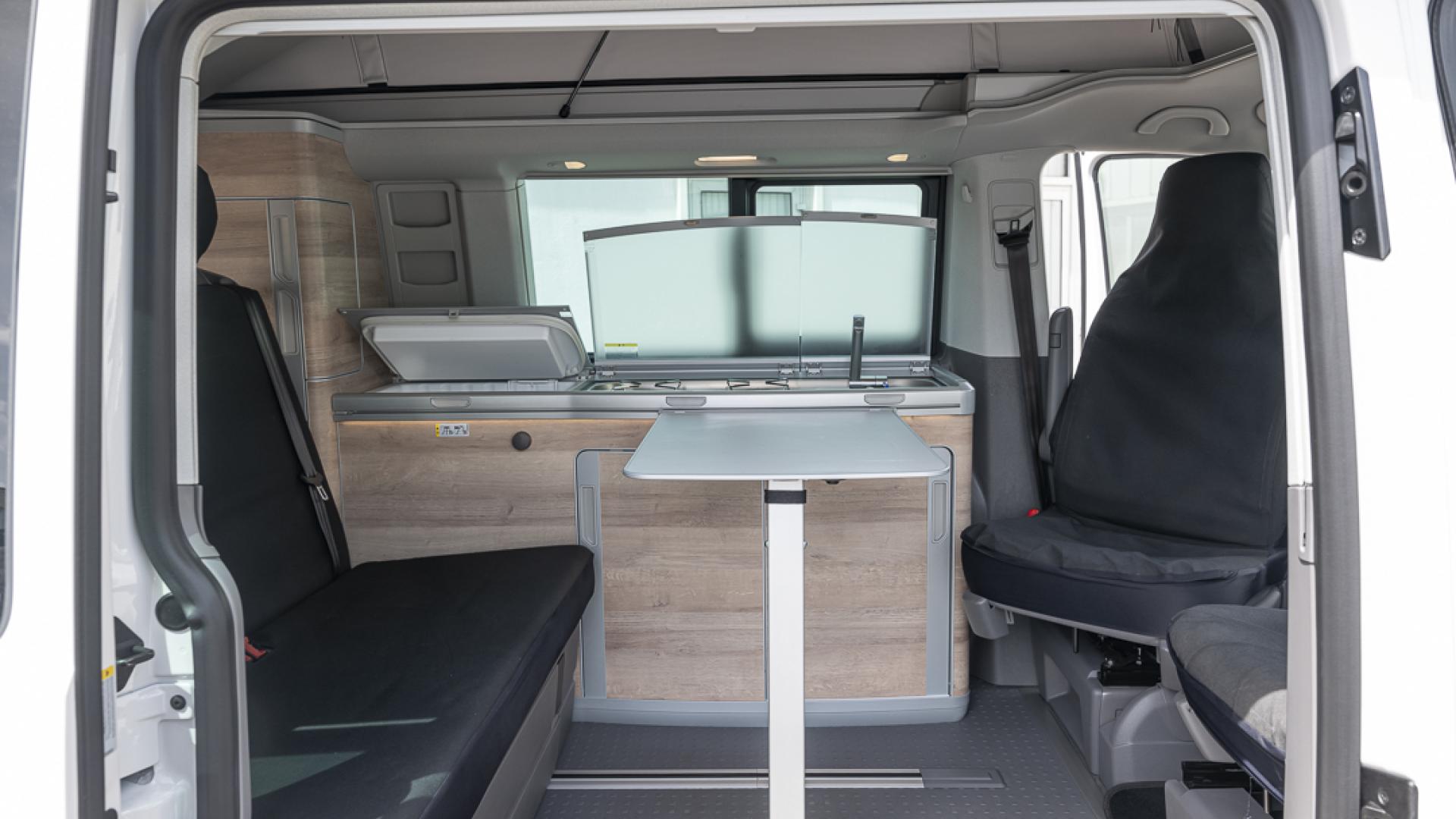 Parfait pour les week-ends ou les road trips. Pratique avec plusieurs rangements et branchements dont une prise 220V active même sans être relié à une borne électrique. Lit intérieur déployé en moins de 15 secondes et hauteur de moins de 2m.