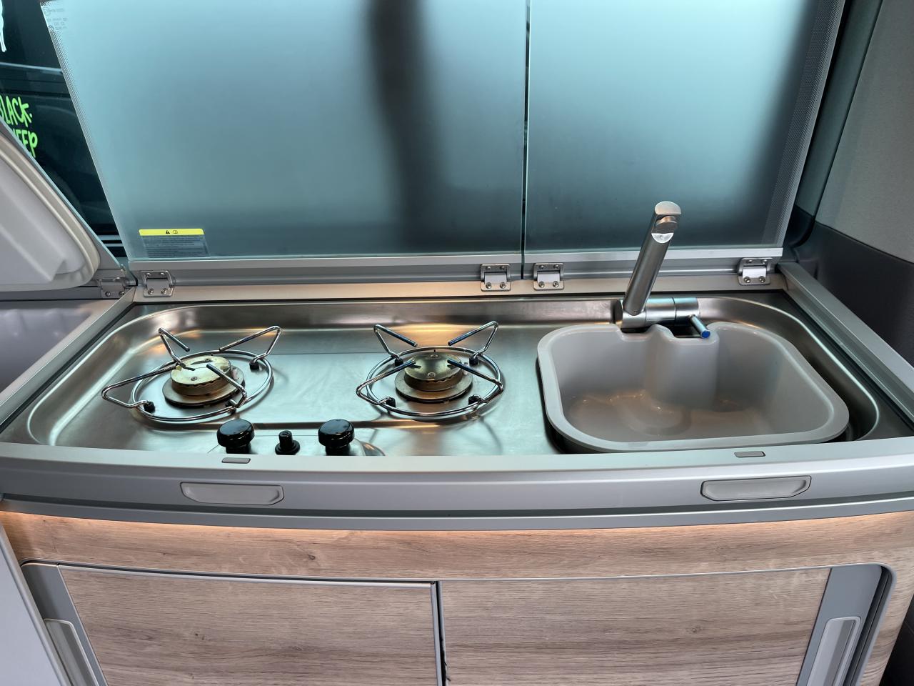 Parfait pour les week-ends ou les road trips. Pratique avec plusieurs rangements et branchements dont une prise 220V active même sans être relié à une borne électrique. Lit intérieur déployé en moins de 15 secondes et hauteur de moins de 2m.